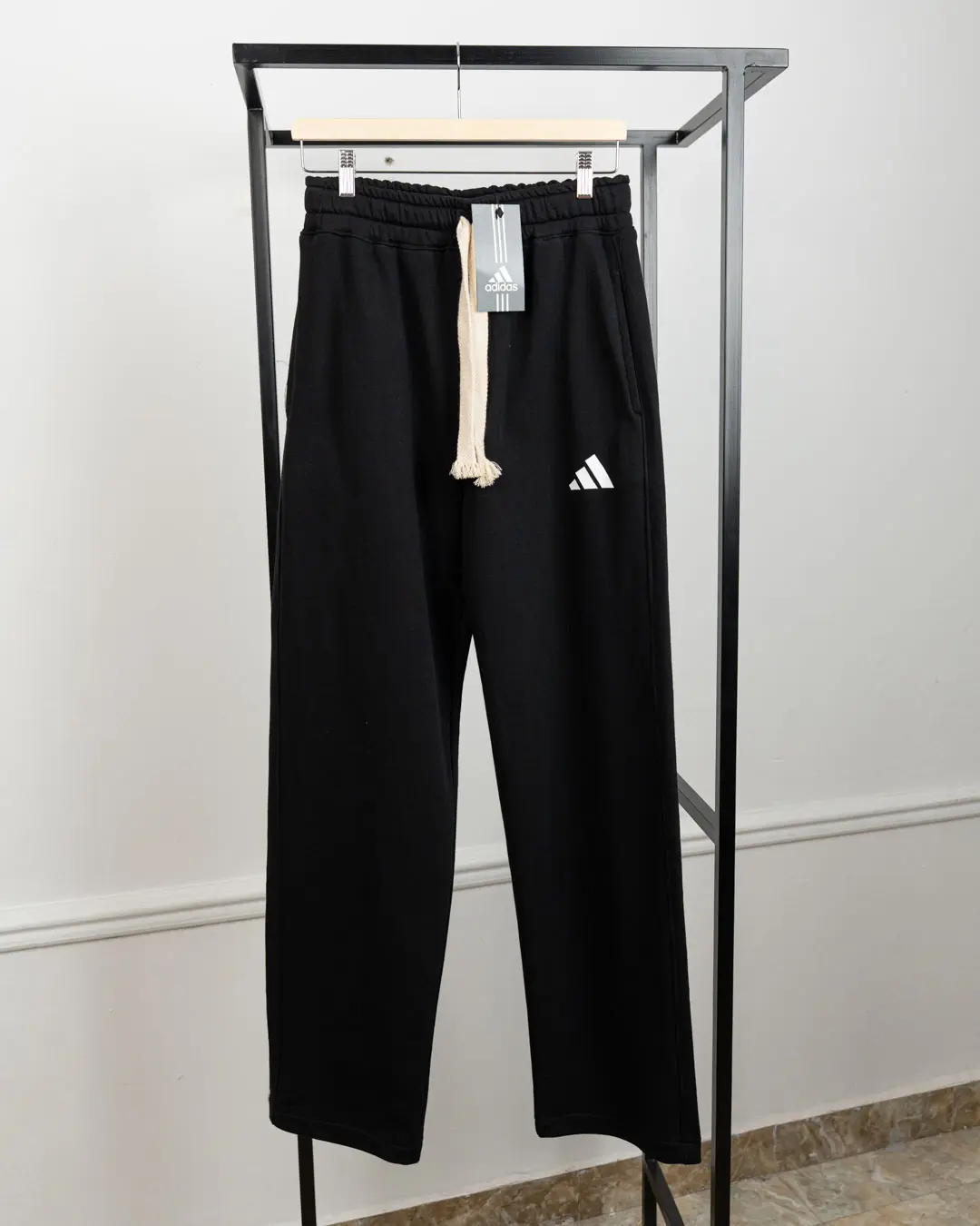 يتميز البنطلون بطباعة DTF عالية الجودة لشعار adidas تعيش معاك فترة طويلة بدون تقشير أو بهتان. تصميم الوايد ليج يعطيه لمسة تريندي مناسبة للستايل الرياضي والـ Streetwear، مع رباط عريض أنيق يضيف ثبات وشكل جمالي للخصر.